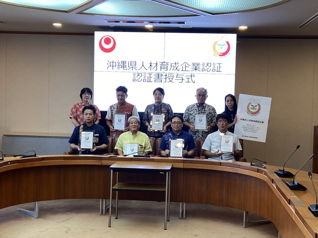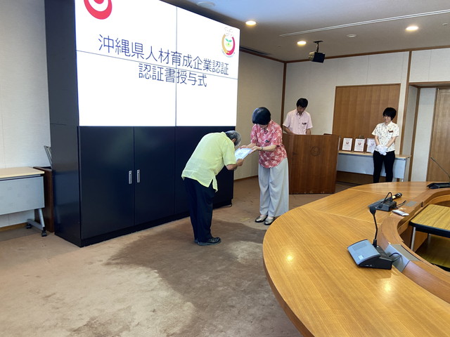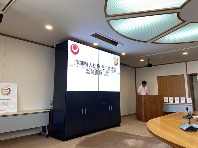 沖縄県人材育成企業認証制度の認証を受け「認証書授与式」に参加いたしました。