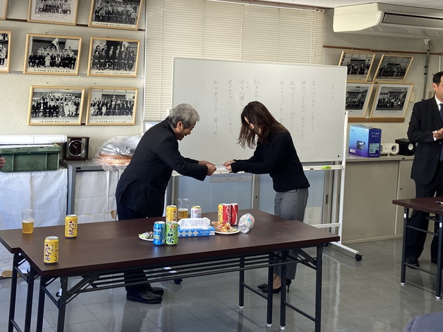 永年勤続表彰、成人祝い、新入社員辞令交付式の様子。